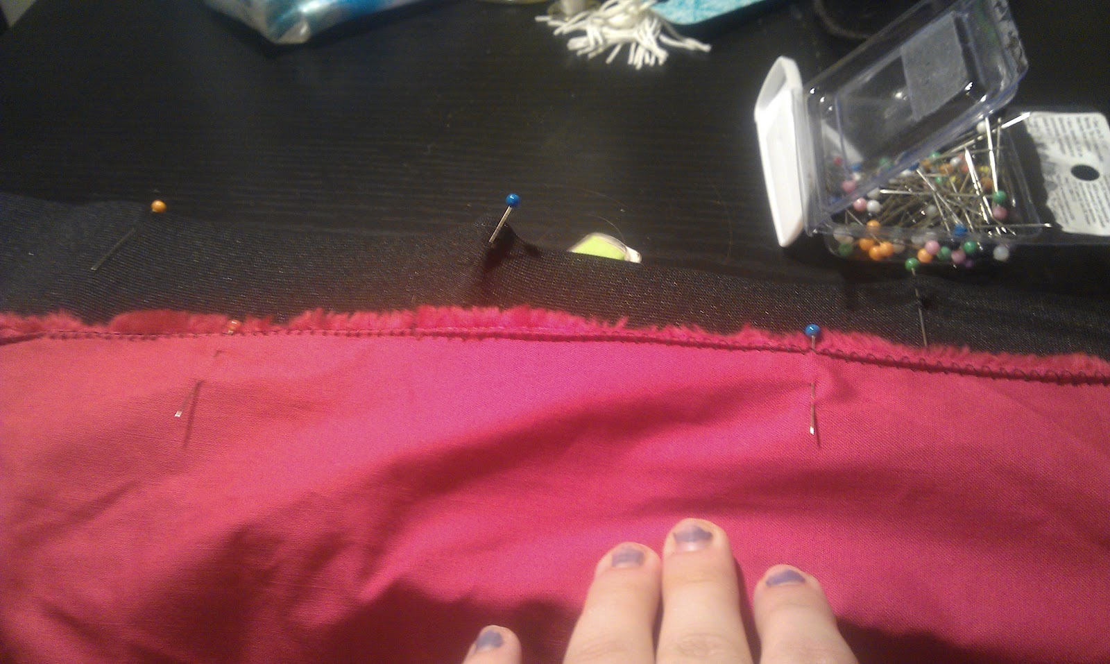 Then once you get your skirt pinned to your elastic, sew them together. Again straight line, nothing fancy like back flips or the like.